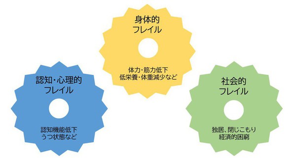 ③閉じこもりや孤立など社会との関係が希薄になる「社会的フレイル」の3つです。