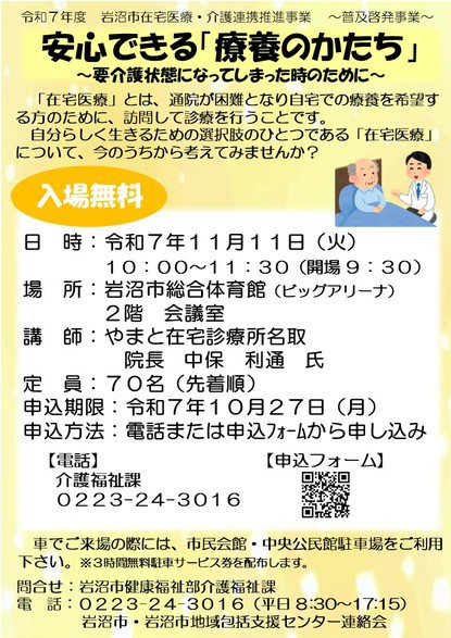 令和7年度在宅医療・介護連携推進事業 講演会 安心できる「療養のかたち」~要介護状態になってしまった時のために~ を開催します