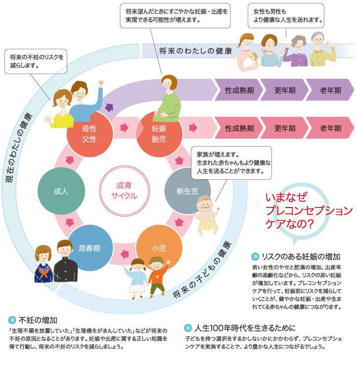 子どもを持つ選択をするかしないかに関わらず、プレコンセプションケアを実践することで、人生100年時代と呼ばれるこれから先の人生を豊かに、そして元気に過ごしていくことにつながります。