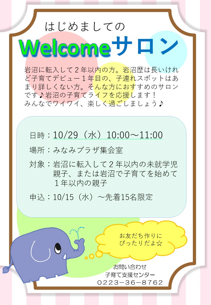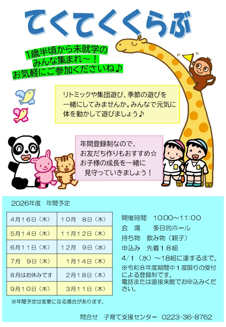 〒989-2480 岩沼市桜一丁目6番20号 電話:0223-23-0826(保育支援係)、0223-23-0529(子育て給付係) FAX:0223-23-2377