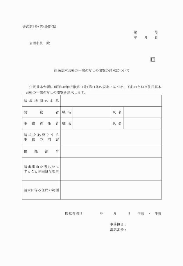 ○岩沼市住民基本台帳の一部の写しの閲覧に関する事務取扱要綱