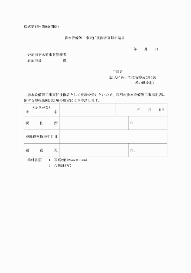 4 責任技術者は、排水設備等工事施工の際登録証を携帯しなければならない。