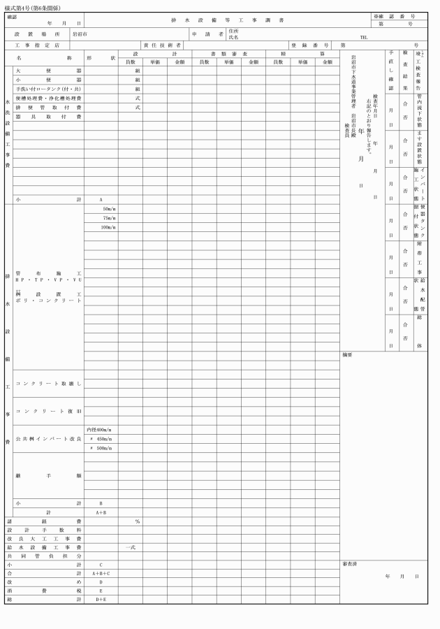 (4) 排水設備等工事調書(様式第4号)